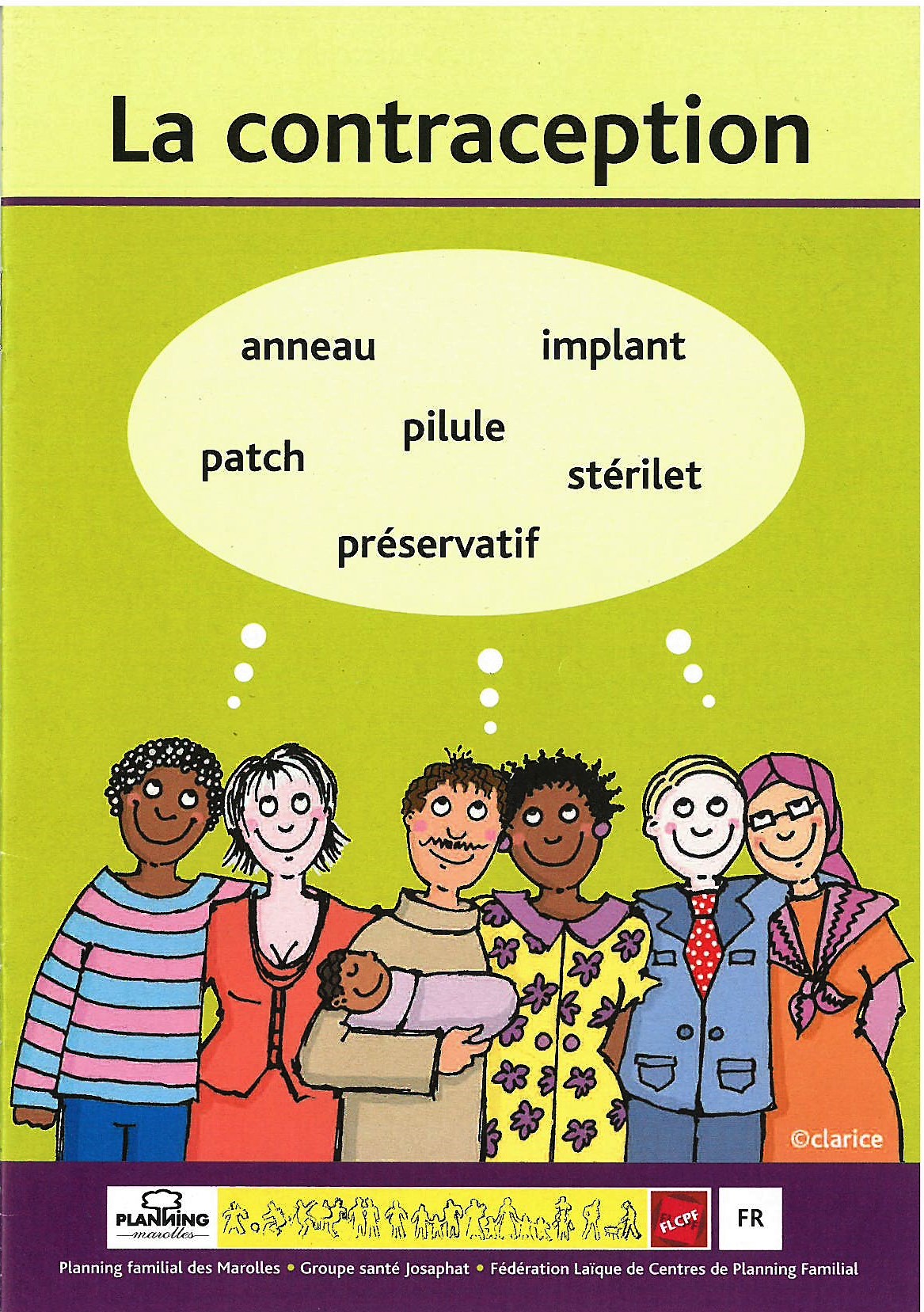 Brochure reprenant un aperçu des différentes méthodes contraceptives, traduite en plusieurs langues (anglais, arabe, bulgare, espagnol, français, roumain, portugais, russe, swahili, turc).